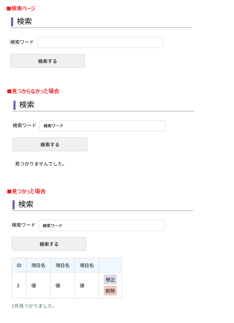 }※検索はあいまい検索(検索対象カラムに検索文字列が含まれているかどうか)